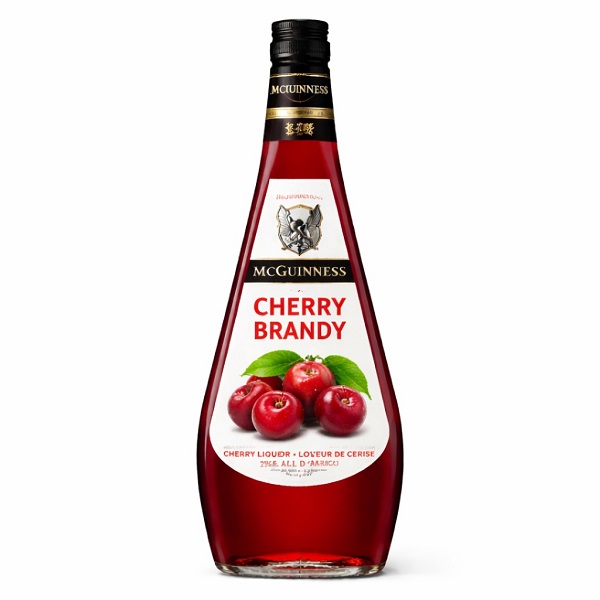 McGuinness offers two distinct cherry-flavored products: McGuinness Cherry Brandy Liqueur and McGuinness Cherry Whisky Liqueur, both of which have a 15% alcohol by volume (ABV).