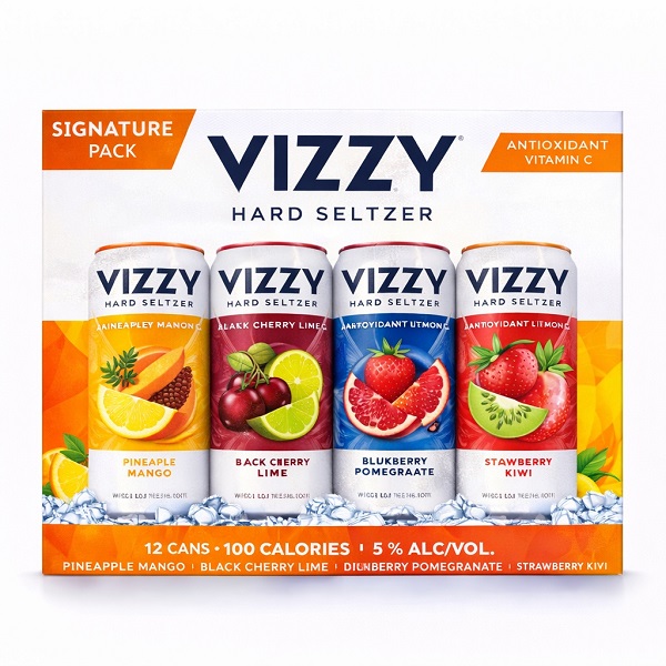 The Vizzy Signature Pack is a variety 12-pack of Vizzy Hard Seltzer known as “Variety Pack #2”, featuring four unique dual-fruit flavors and Antioxidant Vitamin C from acerola cherry. Each can has 100 calories and 5% ABV.
